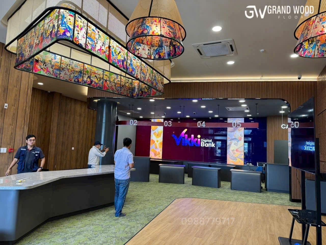 Việc được Vikki Bank lựa chọn làm đối tác cung cấp sàn vinyl là minh chứng rõ nét cho uy tín và năng lực của Grand Wood trên thị trường vật liệu hoàn thiện. Đối với các công trình ngân hàng, yêu cầu đặt ra không chỉ dừng lại ở yếu tố thẩm mỹ mà còn bao gồm độ bền, khả năng chịu lực, tính an toàn và sự ổn định trong quá trình sử dụng lâu dài. Grand Wood đã nghiên cứu kỹ lưỡng đặc thù không gian giao dịch ngân hàng để đề xuất giải pháp sàn vinyl phù hợp, đảm bảo đáp ứng đồng thời các tiêu chí kỹ thuật và hình ảnh thương hiệu. Sự hợp tác này thể hiện mối quan hệ đồng hành bền vững, trong đó Grand Wood không chỉ cung cấp vật liệu mà còn đóng vai trò tư vấn giải pháp, góp phần hoàn thiện không gian làm việc chuyên nghiệp cho hệ thống Vikki Bank.