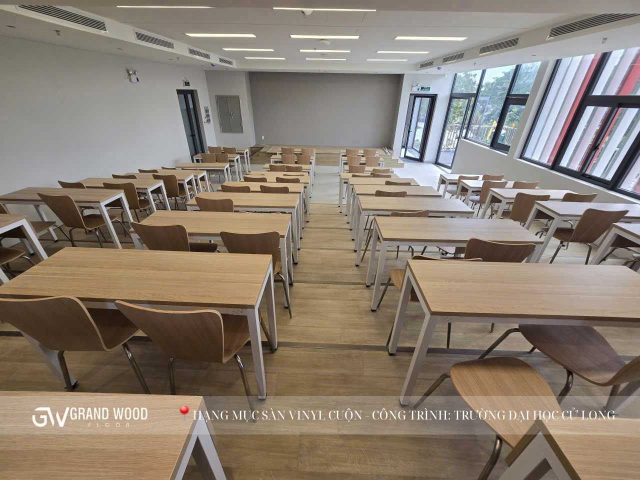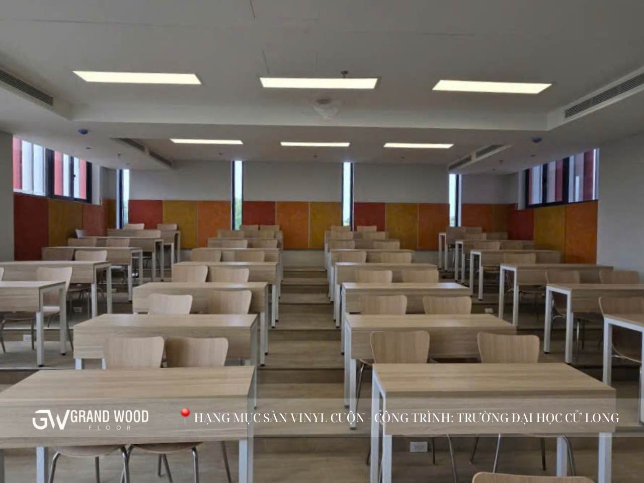 Công trình Trường Đại học Cửu Long là minh chứng rõ ràng cho việc ứng dụng thành công sàn vinyl cuộn trong thực tế. Mỗi bước chân sinh viên, mỗi giờ giảng dạy của thầy cô đều trở nên êm ái, thoải mái và đầy cảm hứng hơn nhờ sự hiện diện của vật liệu này.