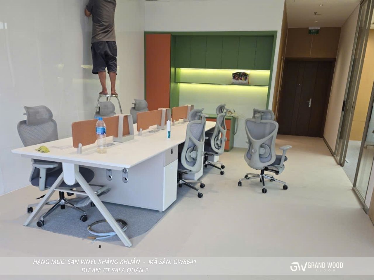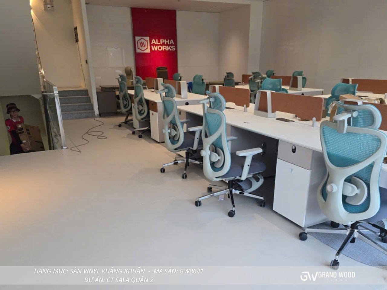 Trong phân khúc thiết kế nội thất văn phòng cao cấp hiện nay, việc lựa chọn vật liệu sàn không đơn thuần chỉ dừng lại ở yếu tố thẩm mỹ mà còn phải đáp ứng những tiêu chuẩn khắt khe về an toàn sức khỏe và độ bền công nghiệp. Dự án lắp đặt sàn Vinyl kháng khuẩn mã GW8641 của Grand Wood tại khu đô thị Sala, Quận 2 là một minh chứng điển hình cho sự kết hợp hoàn hảo giữa công nghệ vật liệu tiên tiến và tư duy thiết kế hiện đại. Với đặc tính kháng khuẩn vượt trội cùng tông màu xám trung tính tinh tế, dòng sàn này đang trở thành lựa chọn ưu tiên hàng đầu cho các tập đoàn lớn như Alpha Works, nơi đòi hỏi sự chuyên nghiệp và môi trường làm việc chuẩn quốc tế. Việc đầu tư vào hệ thống sàn chất lượng không chỉ giúp nâng tầm giá trị thương hiệu mà còn tạo ra một không gian làm việc an tâm, giúp nhân sự tối ưu hóa năng suất trong một môi trường sạch khuẩn và tĩnh lặng tuyệt đối.