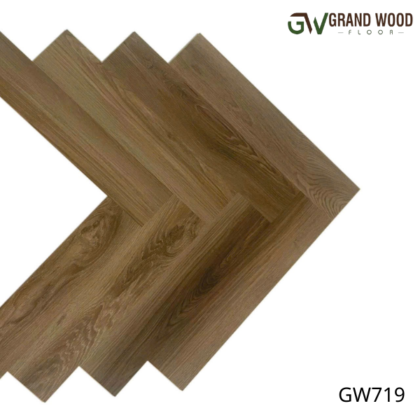 Một trong những lý do khiến sàn nhựa xương cá Grand Wood Floor được yêu thích chính là sự phong phú về màu sắc và kiểu vân gỗ. Dòng sản phẩm GW719 mang tông nâu trầm ấm áp, phù hợp cho những không gian cổ điển, sang trọng và mang hơi hướng hoài niệm. Cùng mã GW719 sáng, gam nâu sáng nhẹ nhàng lại đem đến cảm giác ấm cúng, gần gũi, lý tưởng cho phòng khách hoặc căn hộ gia đình. Trong khi đó, GW715 với sắc xám ghi hiện đại là lựa chọn hoàn hảo cho những ai yêu thích phong cách Bắc Âu tối giản, tinh tế và trẻ trung. Dù là màu nào, mỗi đường vân gỗ đều được in 3D sắc nét, tạo hiệu ứng nổi chân thực, khiến người nhìn khó phân biệt với sàn gỗ thật. Chính nhờ sự đa dạng và tính thẩm mỹ cao, Grand Wood Floor dễ dàng đáp ứng mọi phong cách nội thất – từ cổ điển, tân cổ điển đến hiện đại, tối giản hay công nghiệp.