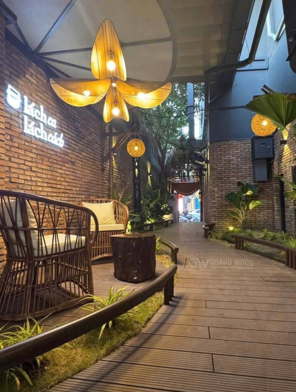 Trong xu hướng kiến trúc bền vững năm 2026, việc kết hợp giữa vẻ đẹp hoài cổ và vật liệu hiện đại đang trở thành chuẩn mực mới cho các không gian cafe và sân vườn cao cấp. Gỗ nhựa (WPC) không chỉ đơn thuần là một vật liệu thay thế gỗ tự nhiên mà nó còn là "ngôn ngữ" biểu đạt sự tinh tế, giúp hiện thực hóa những lối đi uốn lượn mềm mại hay những sàn gỗ ngoài trời đậm chất Vintage. Khi ánh đèn vàng lung linh soi rọi xuống từng thớ vân gỗ tinh xảo, không gian bỗng trở nên sâu lắng, gợi nhắc về những ký ức xưa cũ nhưng vẫn toát lên hơi thở thời đại.